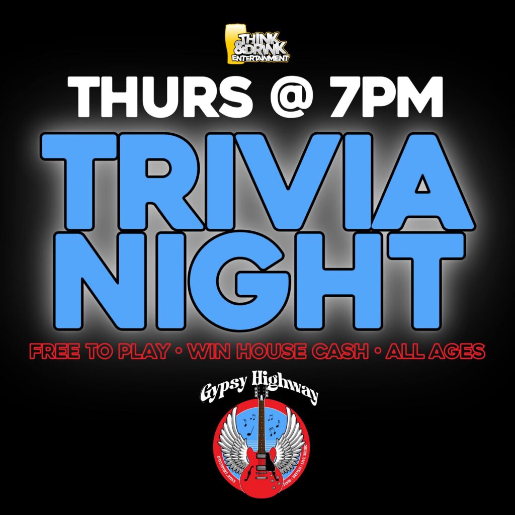 #NewLocationAlert #ThinkAndDrinkThursdays TRIVIA NIGHT Thursdays @ 7pm GypsyHighway (Davenport, IA) Free To Play Win House Cash! ALL AGES Get there EARLY to get a table! - Think & Drink Trivia...